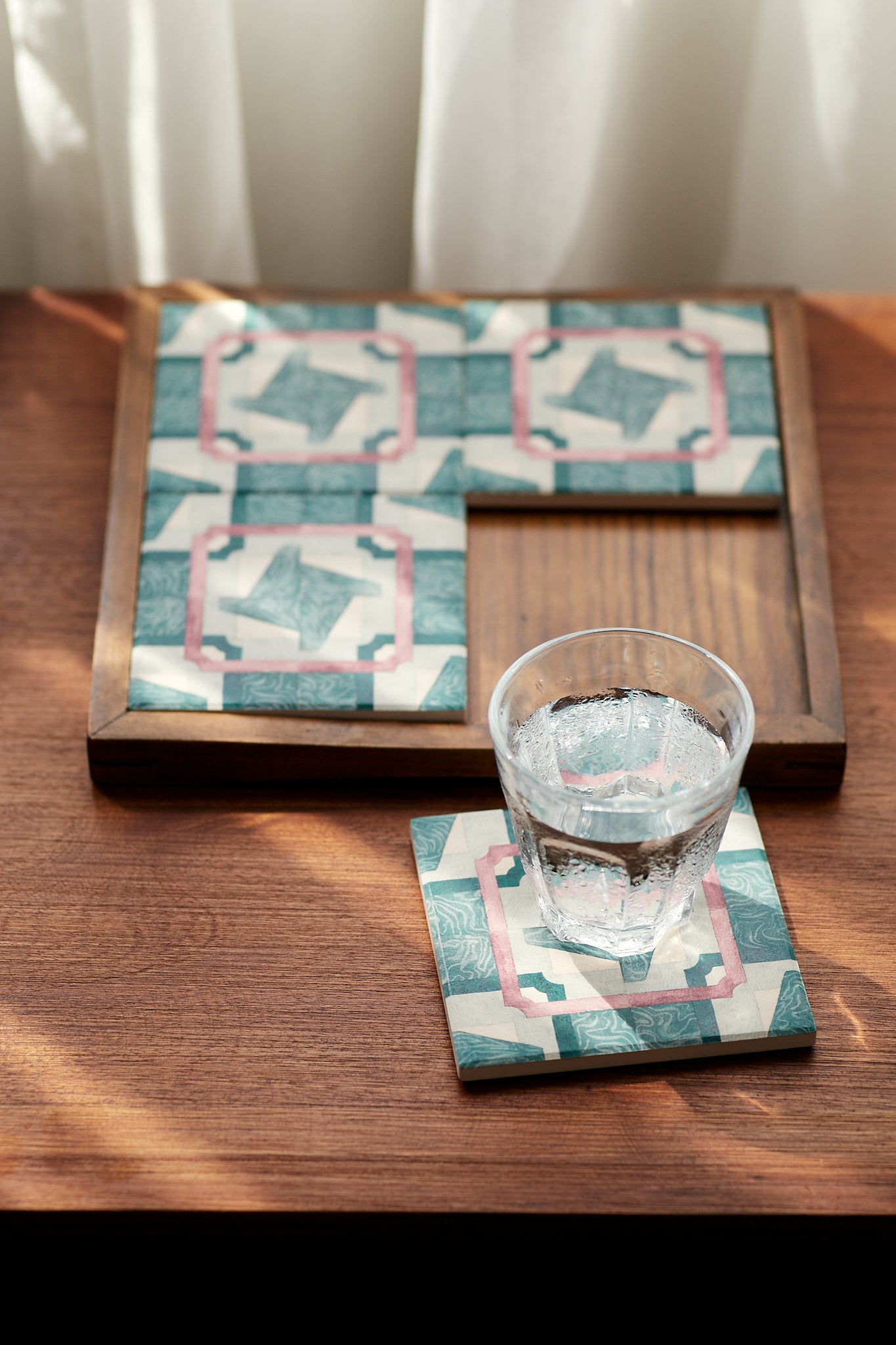 Khay gỗ giúp gạch lót ly có công dụng đa dạng hơn. Có thể biến những viên gạch lót ly thành khung tranh, lót đồ dùng trong phòng tắm, khay để phục vụ, đồ lót nồi, và nhiều công dụng hơn nữa.